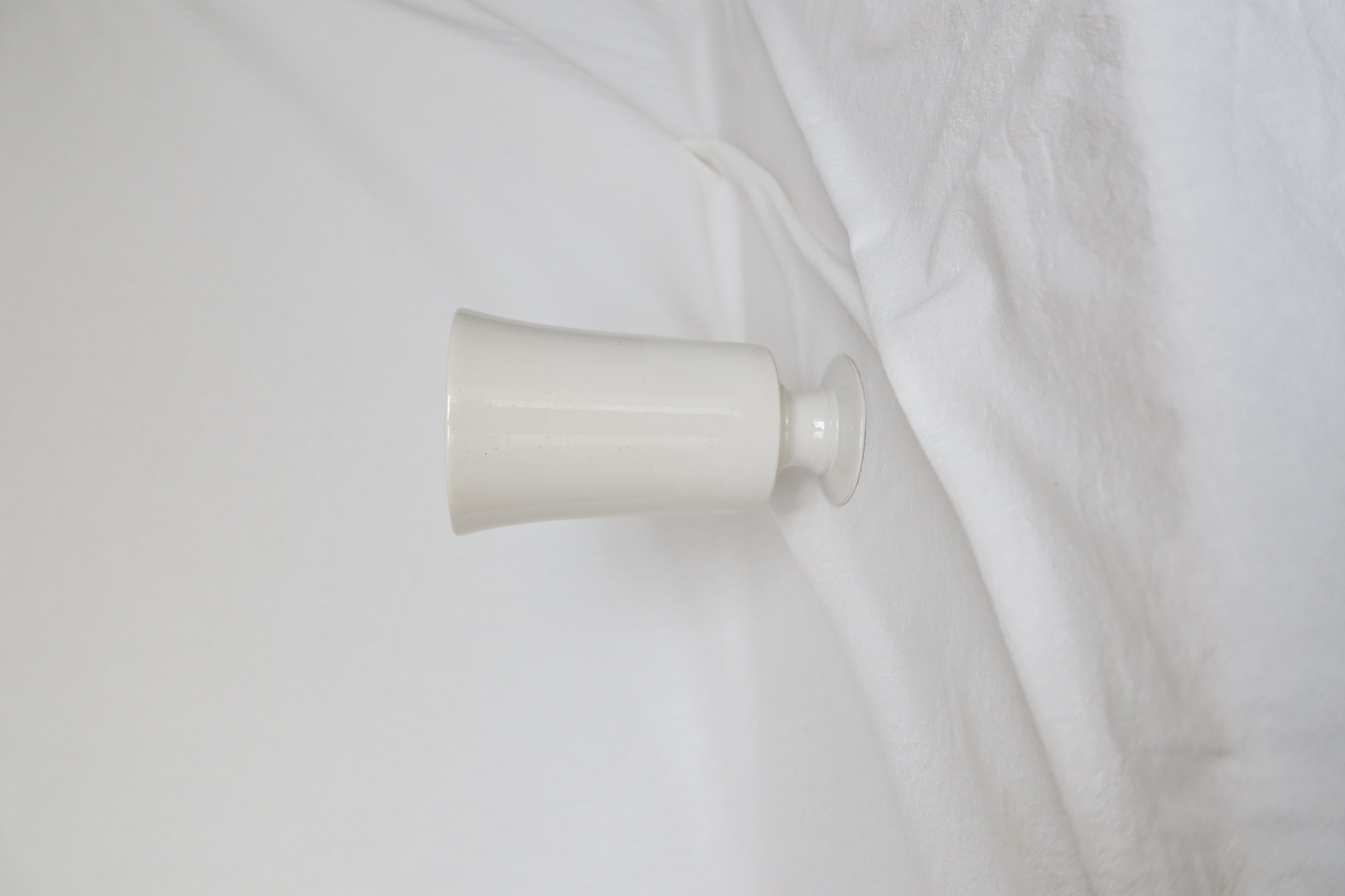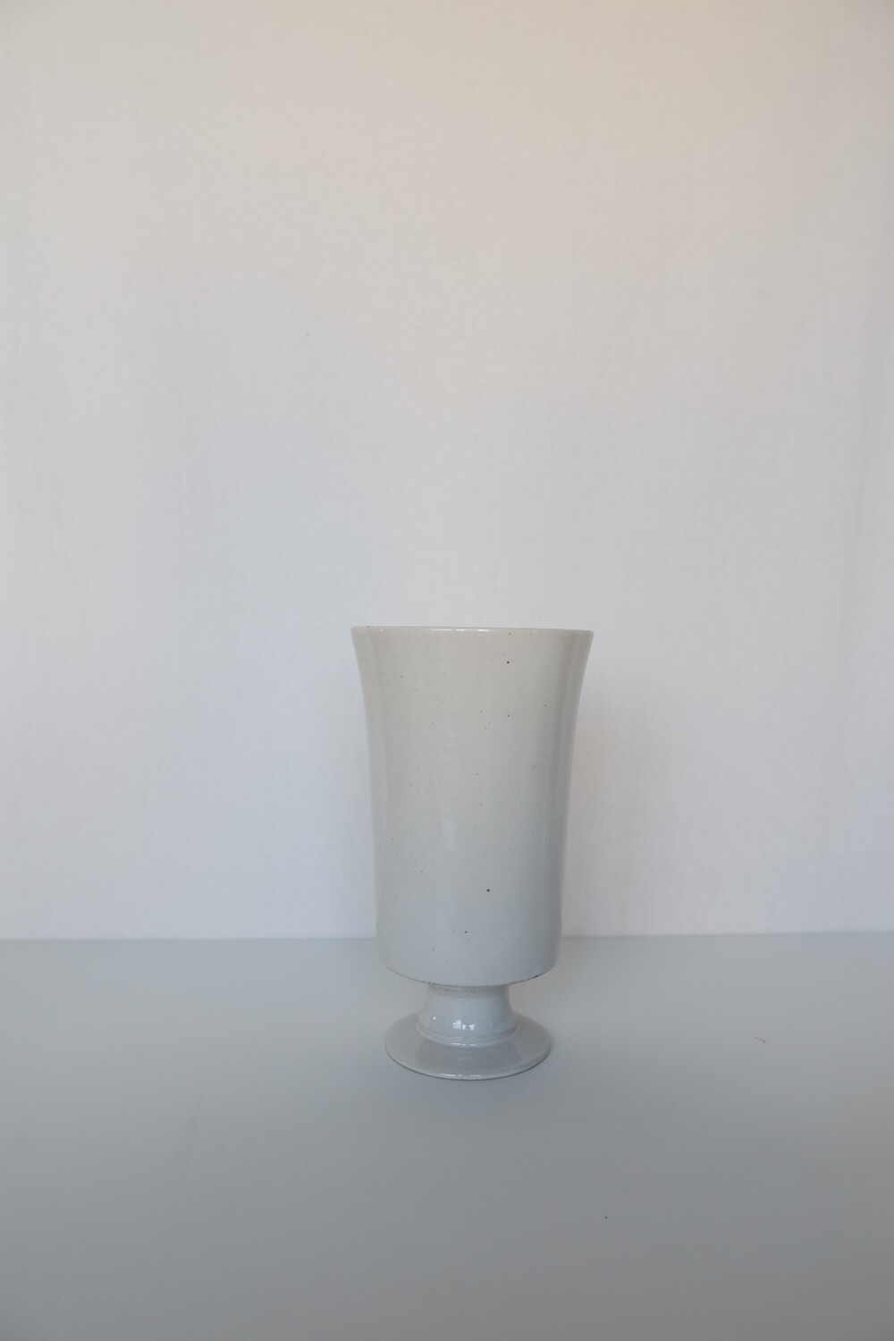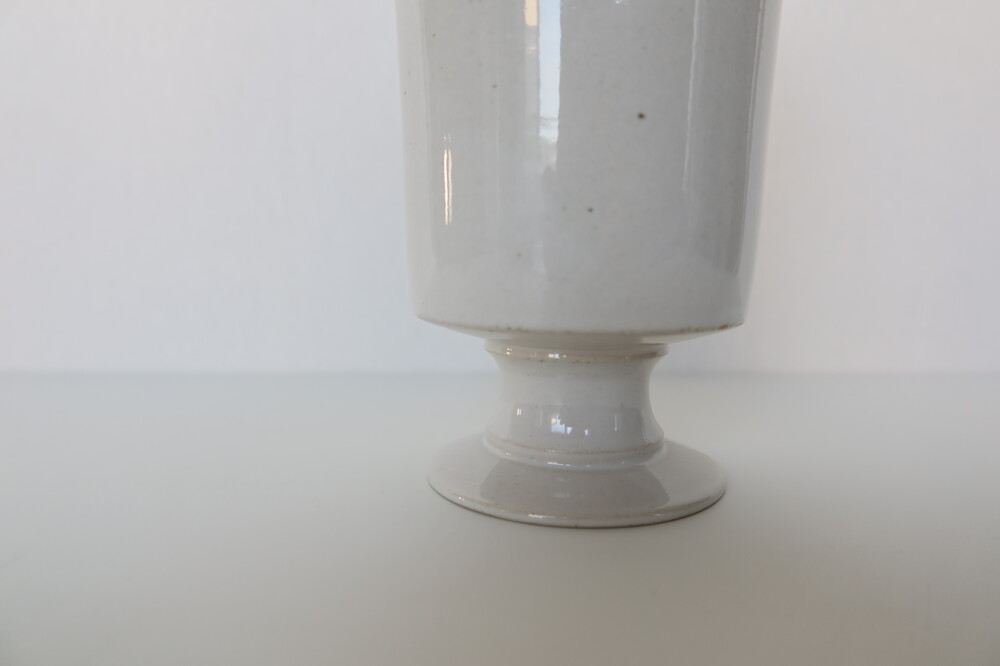 물레로 한 점 한 점 빚어낸 높은 화병 입니다. 전체적인 균형이 자연스럽게 휘어지고 기울어진 형태이며 은은하게 흙의 질감이 비치는 백색의 광택 유약으로 장식했습니다. 모서리 마다 자연스럽게 흙의 질감이 드러나는 곳이 있습니다.