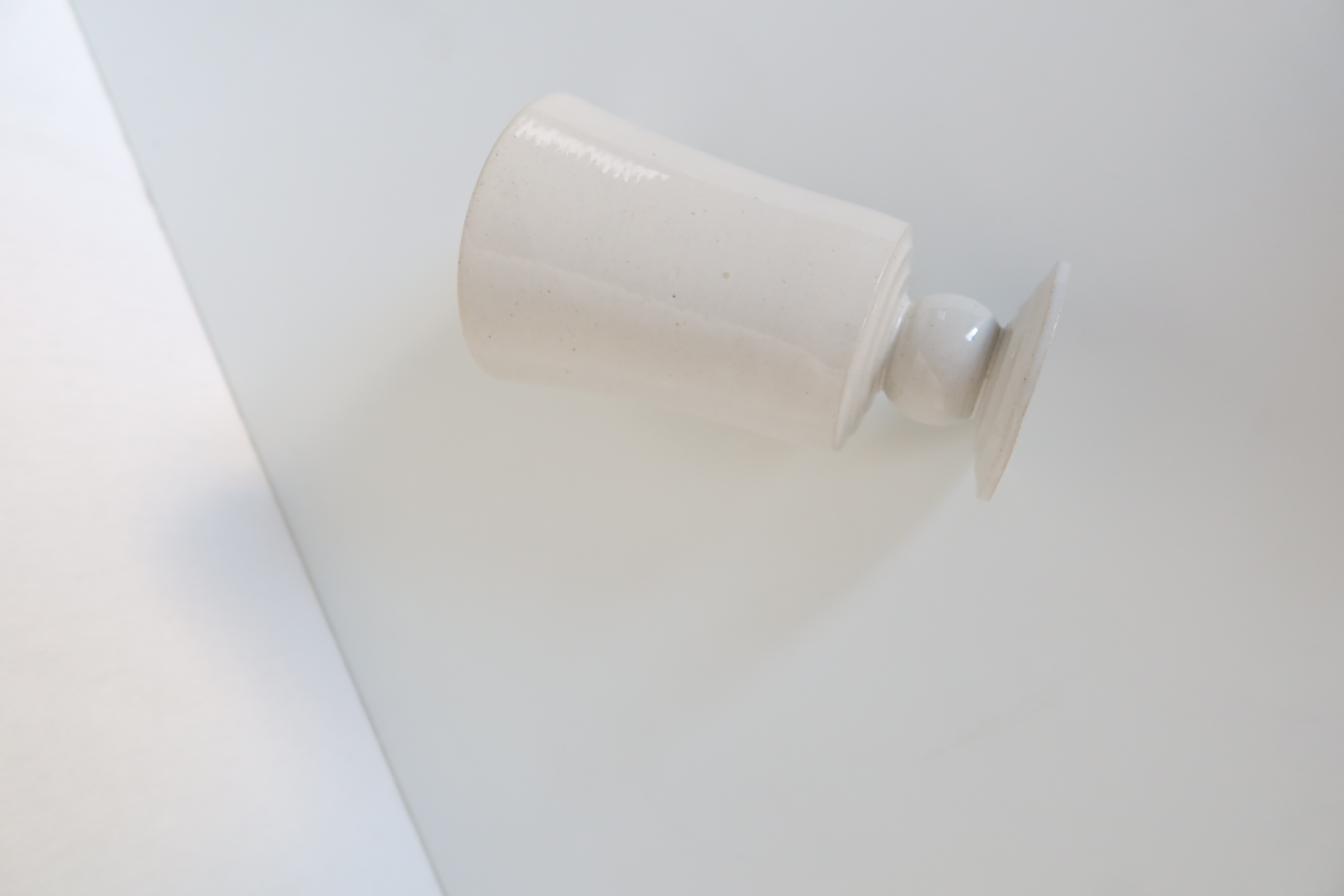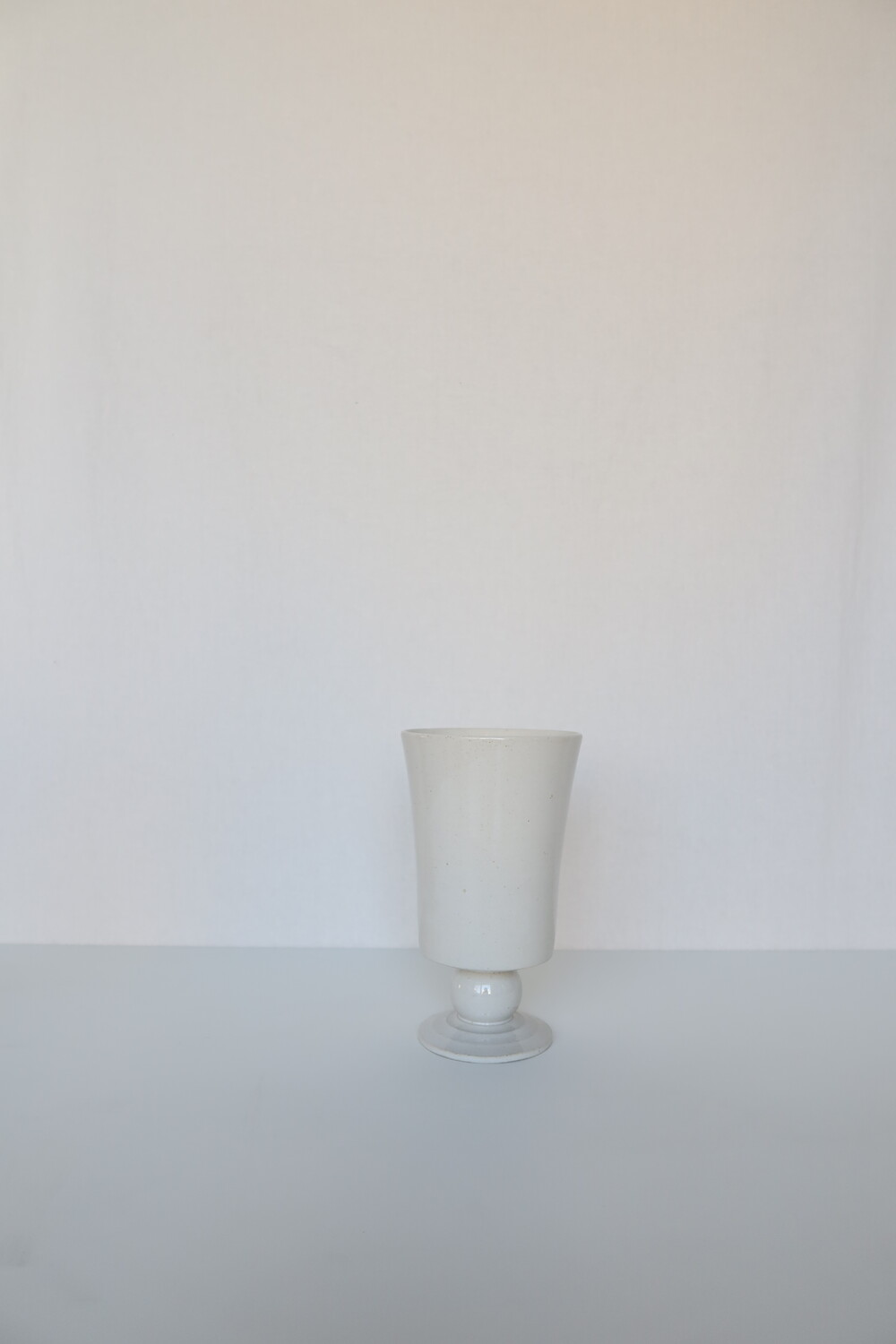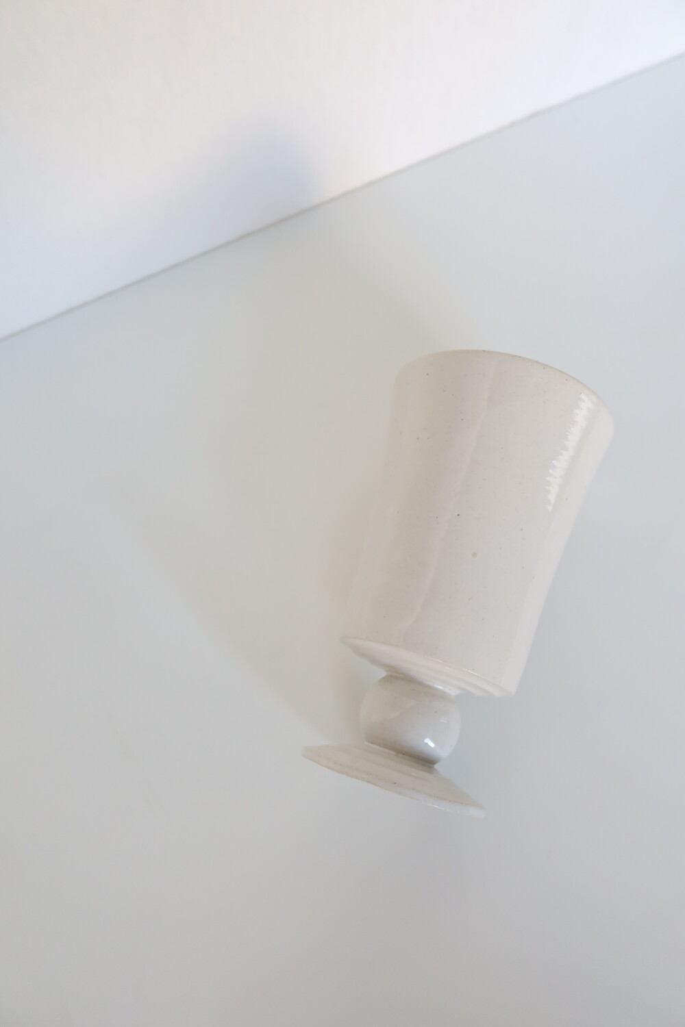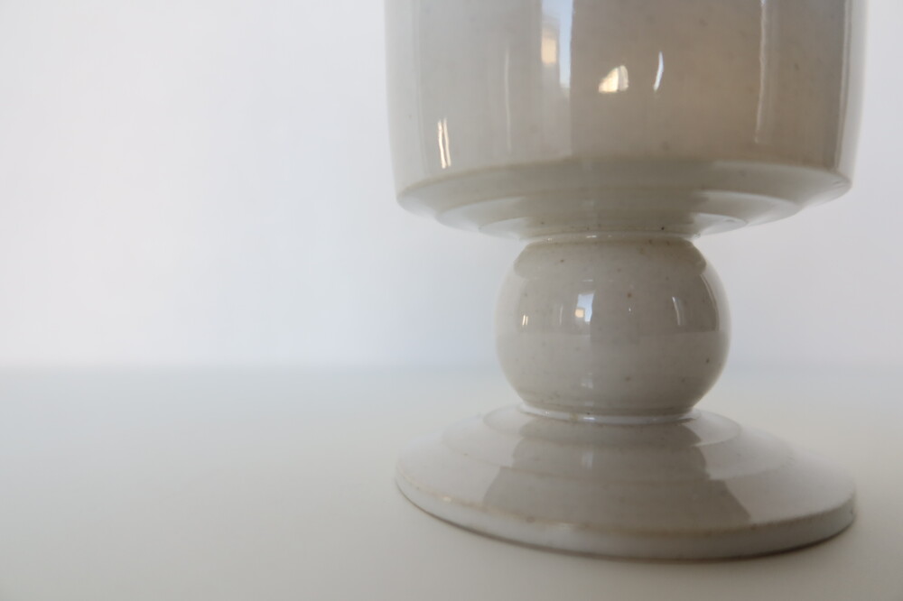 물레로 한 점 한 점 빚어낸 높은 화병 입니다. 전체적인 균형이 자연스럽게 휘어지고 기울어진 형태이며 은은하게 흙의 질감이 비치는 백색의 광택 유약으로 장식했습니다. 모서리 마다 자연스럽게 흙의 질감이 드러나는 곳이 있습니다.