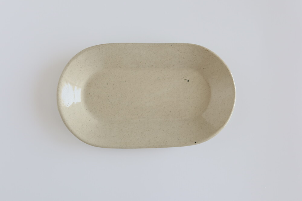 유약 아래로 흙의 질감과 굵은 철 점 (검은색 점)들이 자연스럽게 비치는 표면을 가지고 있습니다.