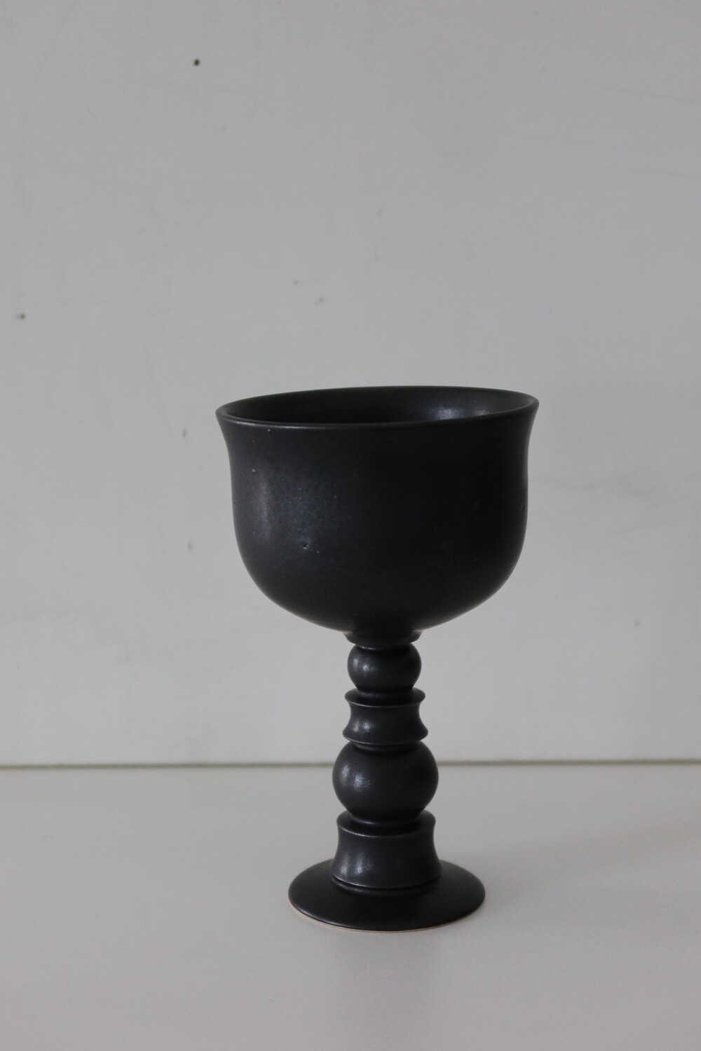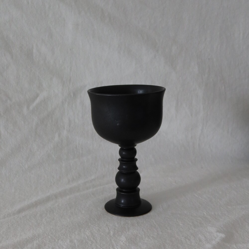 피스풀띵즈의 고블렛 원앤온리 라인 입니다. 원앤온리 라인은 구매자 한 사람만을 위해 제작된 소장 가치 높은 라인으로 표면에 흙의 입자가 거칠게 비치는 부분이 있으며 매트한 블랙 유약으로 장식되었습니다.