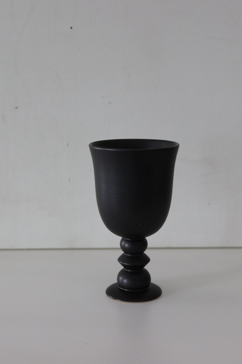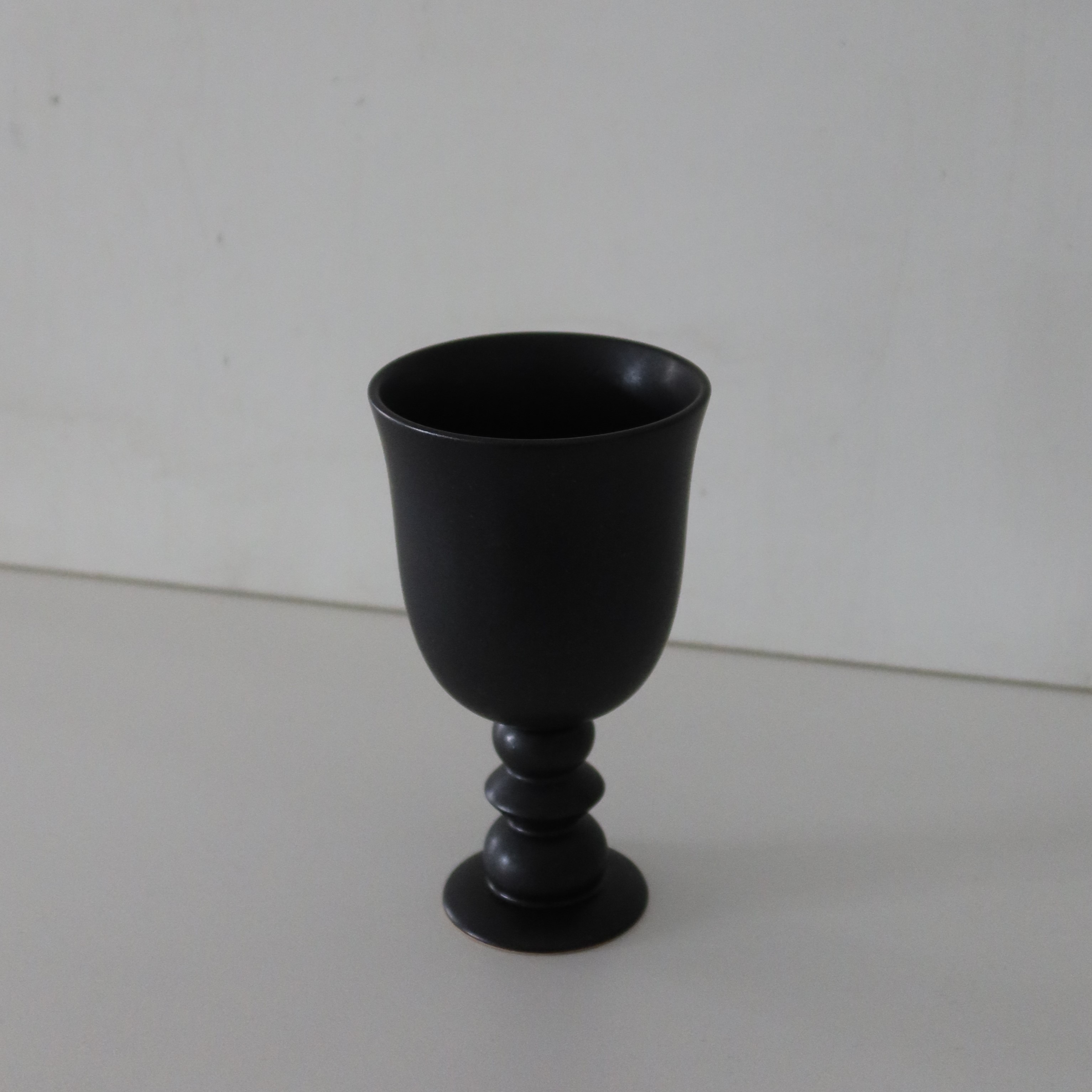 피스풀띵즈의 고블렛 원앤온리 라인 입니다. 원앤온리 라인은 구매자 한 사람만을 위해 제작된 소장 가치 높은 라인으로 표면에 흙의 입자가 거칠게 비치는 부분이 있으며 매트한 블랙 유약으로 장식되었습니다.