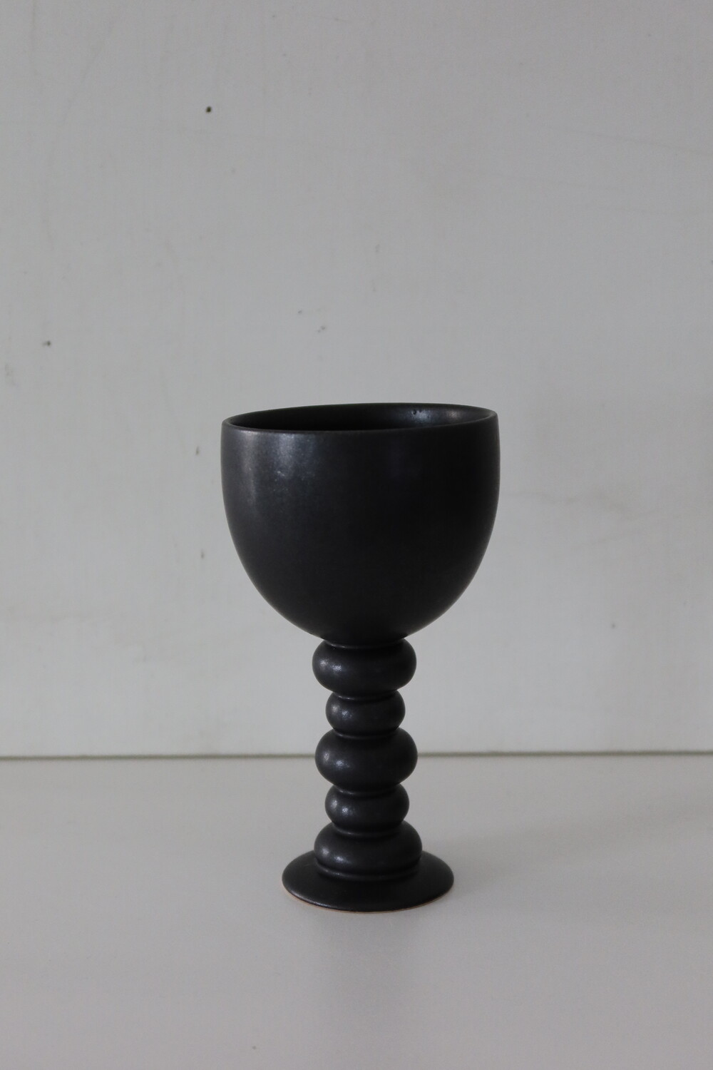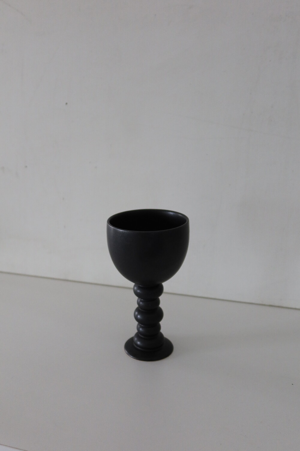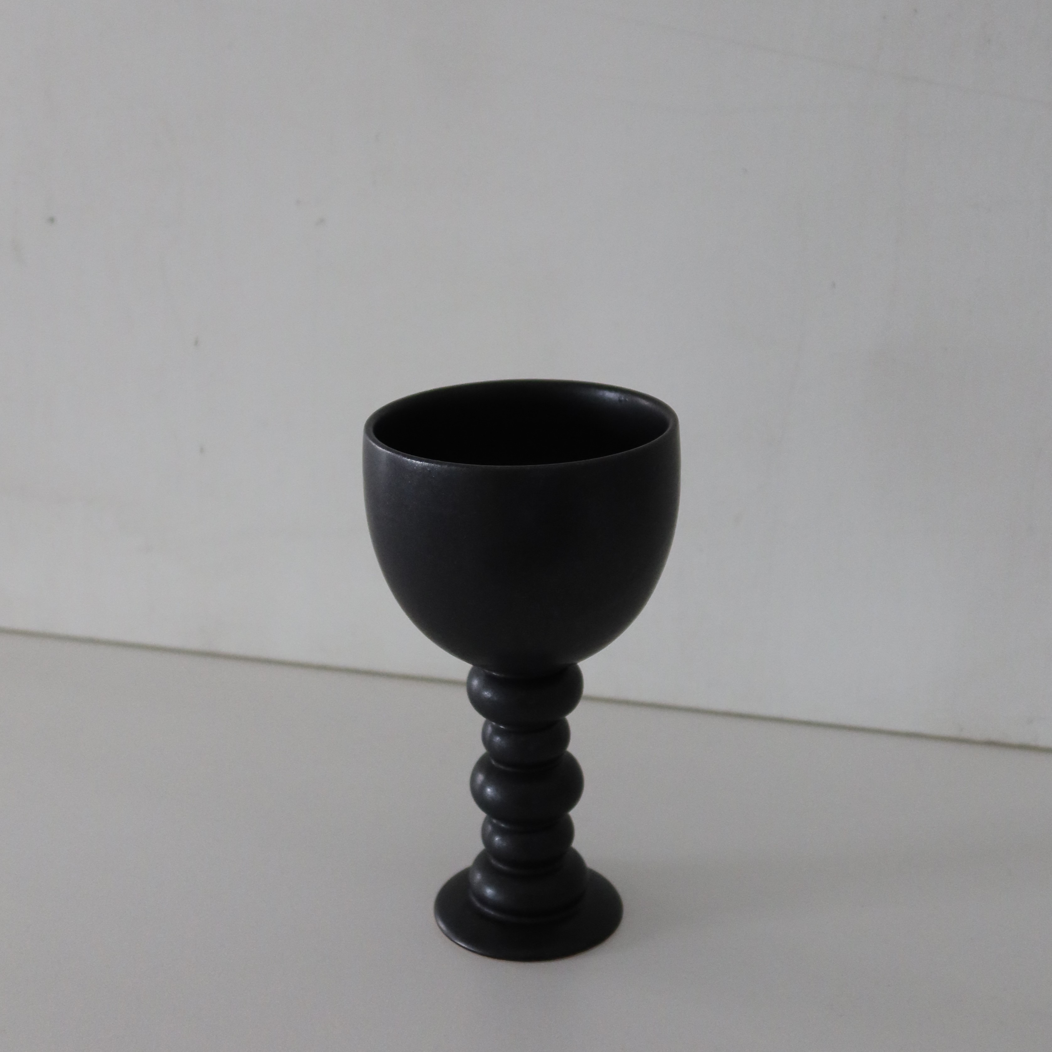 피스풀띵즈의 고블렛 원앤온리 라인 입니다. 원앤온리 라인은 구매자 한 사람만을 위해 제작된 소장 가치 높은 라인으로 표면에 흙의 입자가 거칠게 비치는 부분이 있으며 매트한 블랙 유약으로 장식되었습니다.